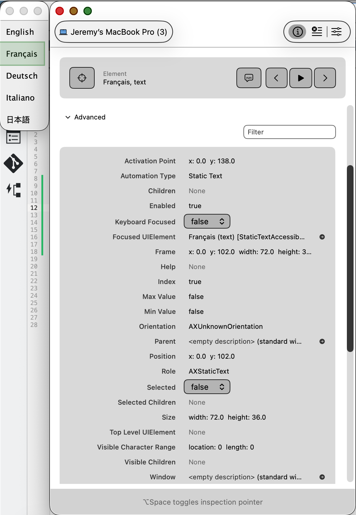 * Alternatively / more specifically: use Apple's "Accessibility Inspector" app